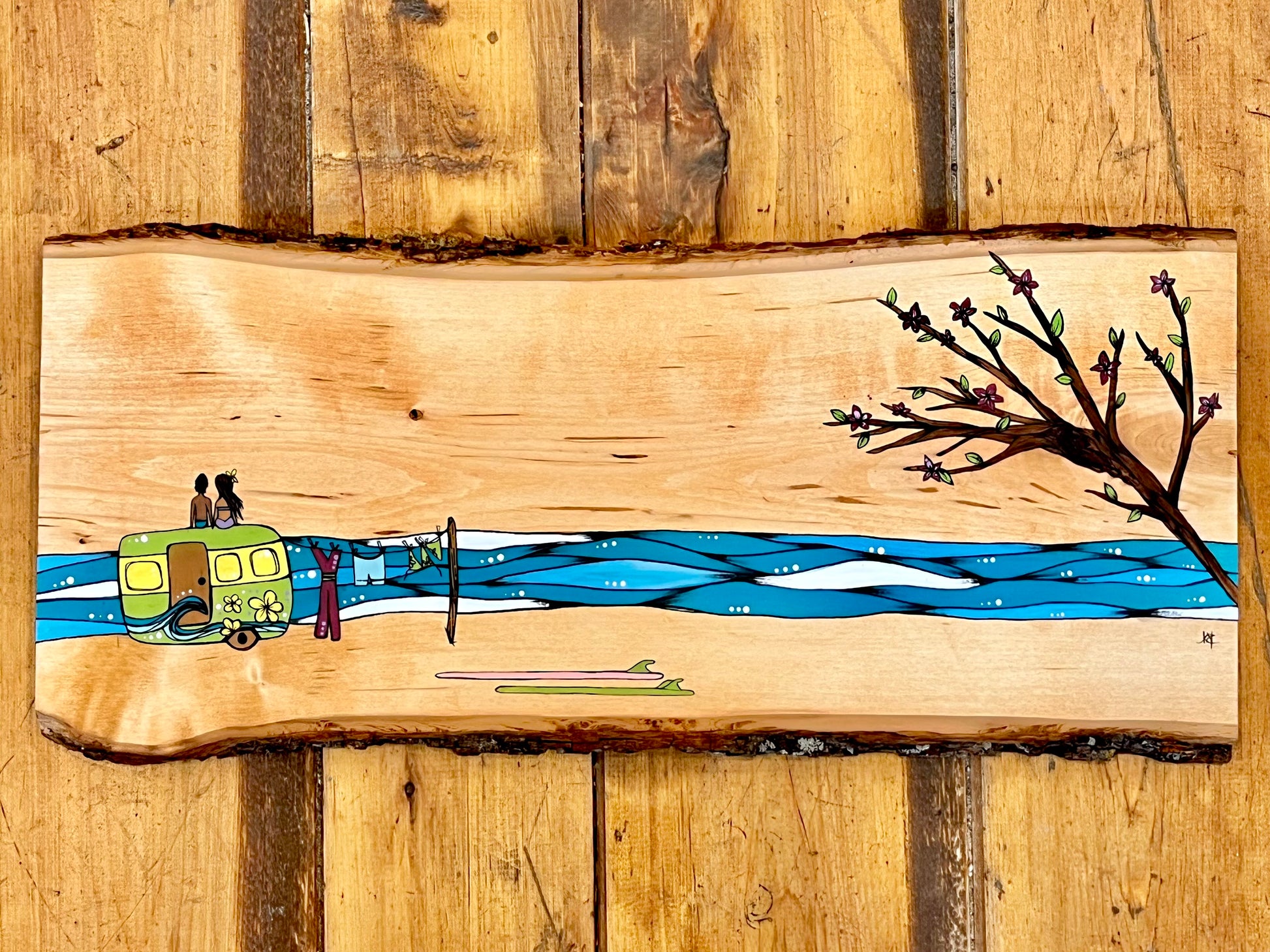 Original artwork on reclaimed basswood. 23”x10”