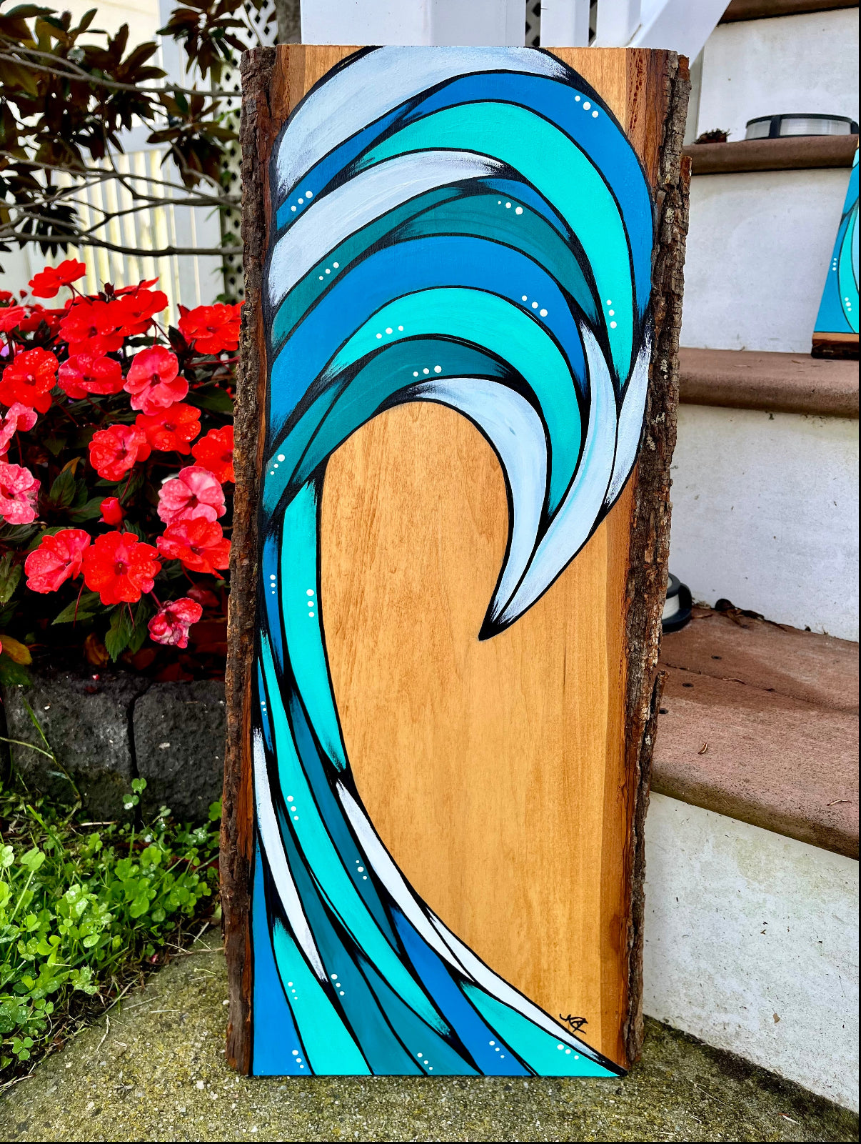 - color of wave ( dark blues, light blues, turquoise, pops of any additional colors)