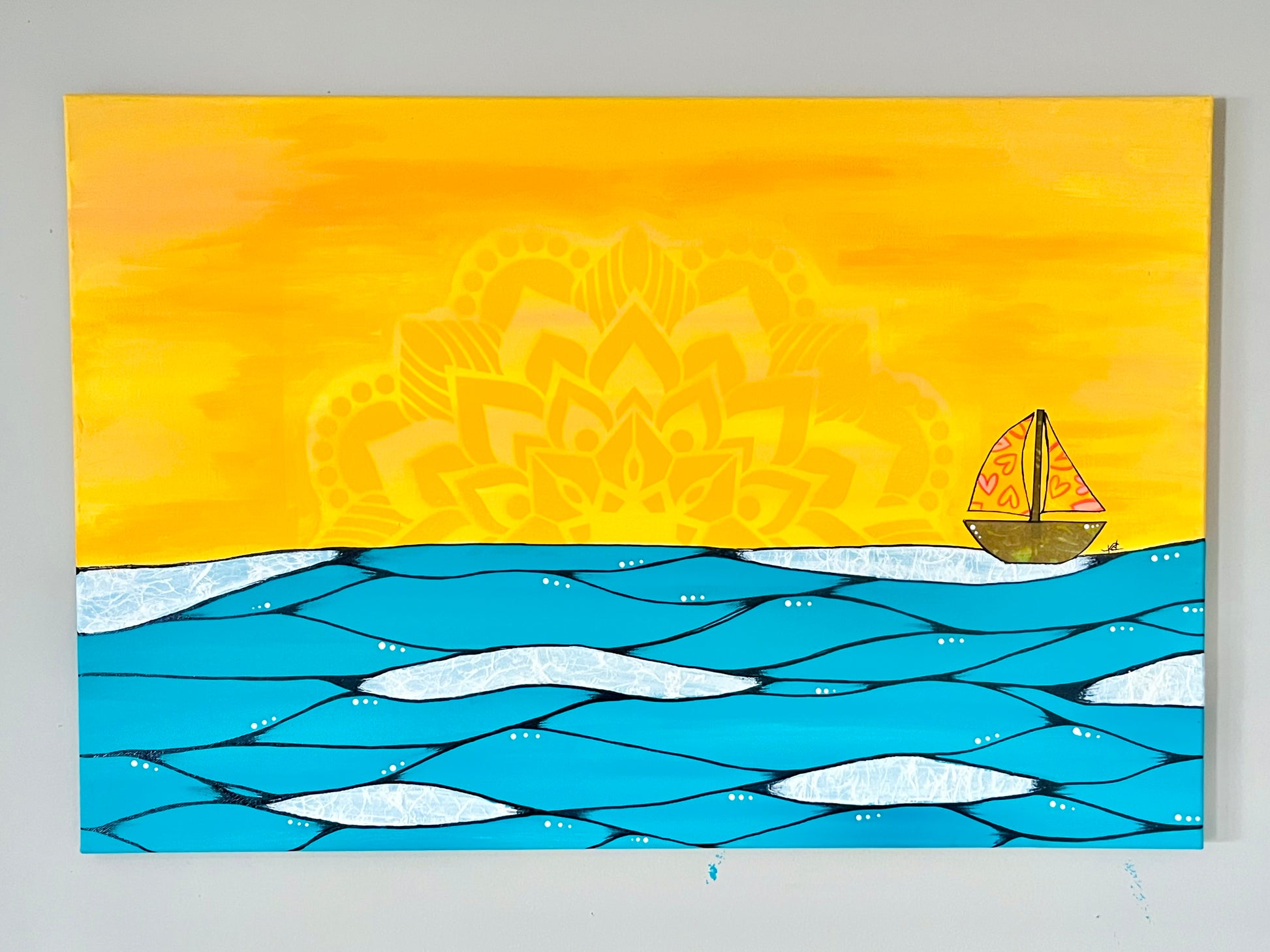 20”x30” mixed media on canvas. Layers of spray paint, acrylic, collage paper, and ink! Available as is or additional upgrade of epoxy resin glass coat + frame. ***Please allow 2-3 weeks for finish upgrade