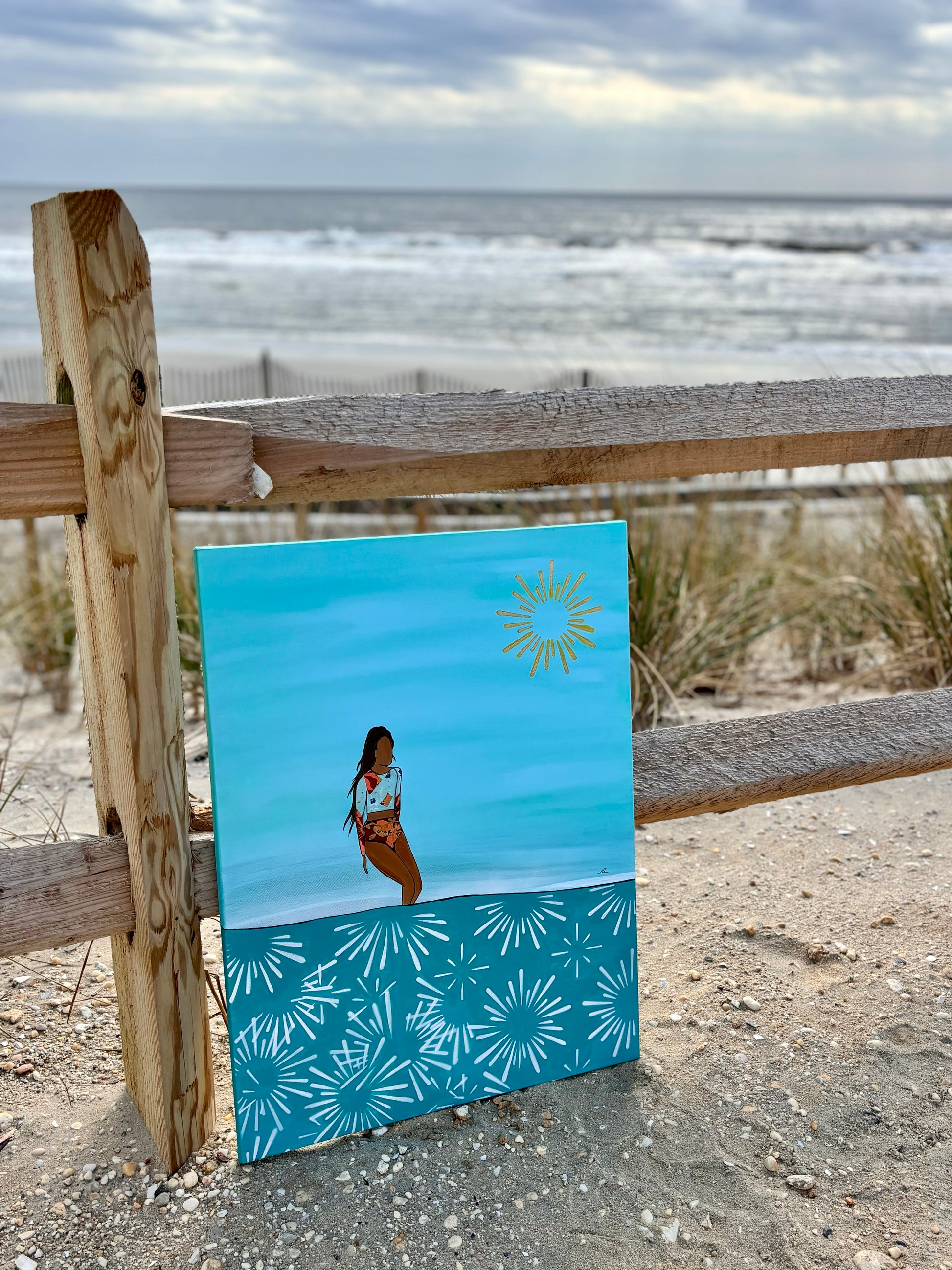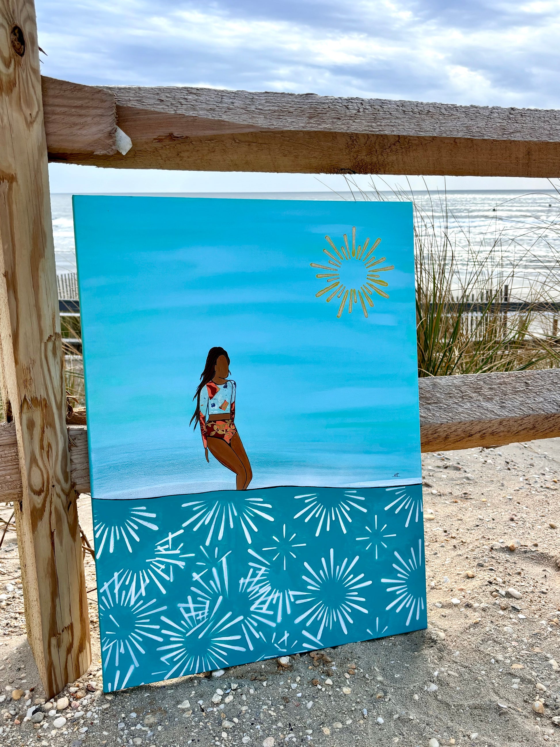 16”x20” mixed media on canvas. Layers of spray paint, acrylic, collage paper, and ink!