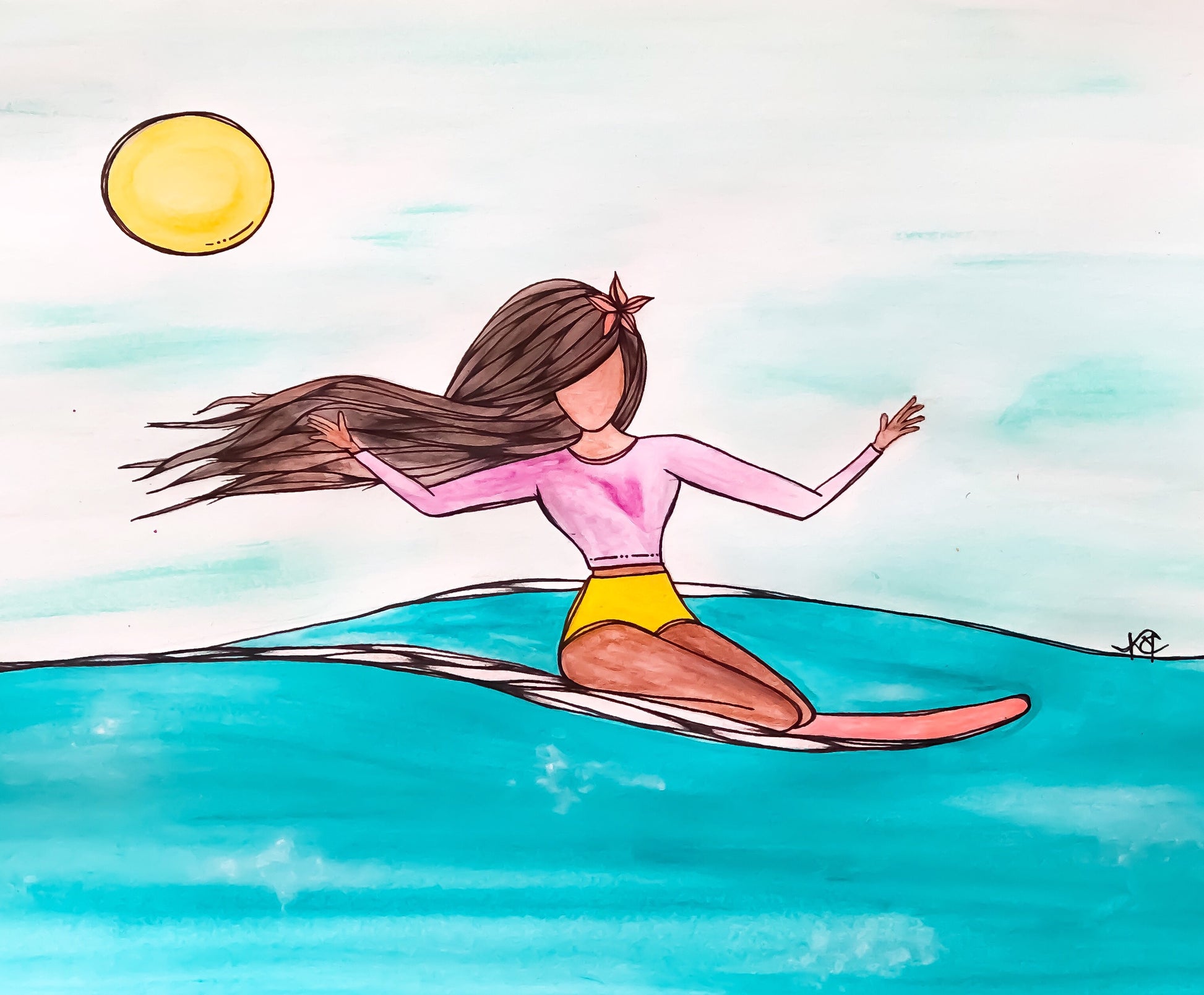 I’m still learning and growing in the ocean and I still have moments where I feel like I’m just beginning. So many failed pop-ups, often times landing on my knees. I’ve learned to love every aspect of riding a wave, even on my knees, cruising down the face of the wave, hands in the air, not a care in the world. It’s also much easier to feel the side of the wave.