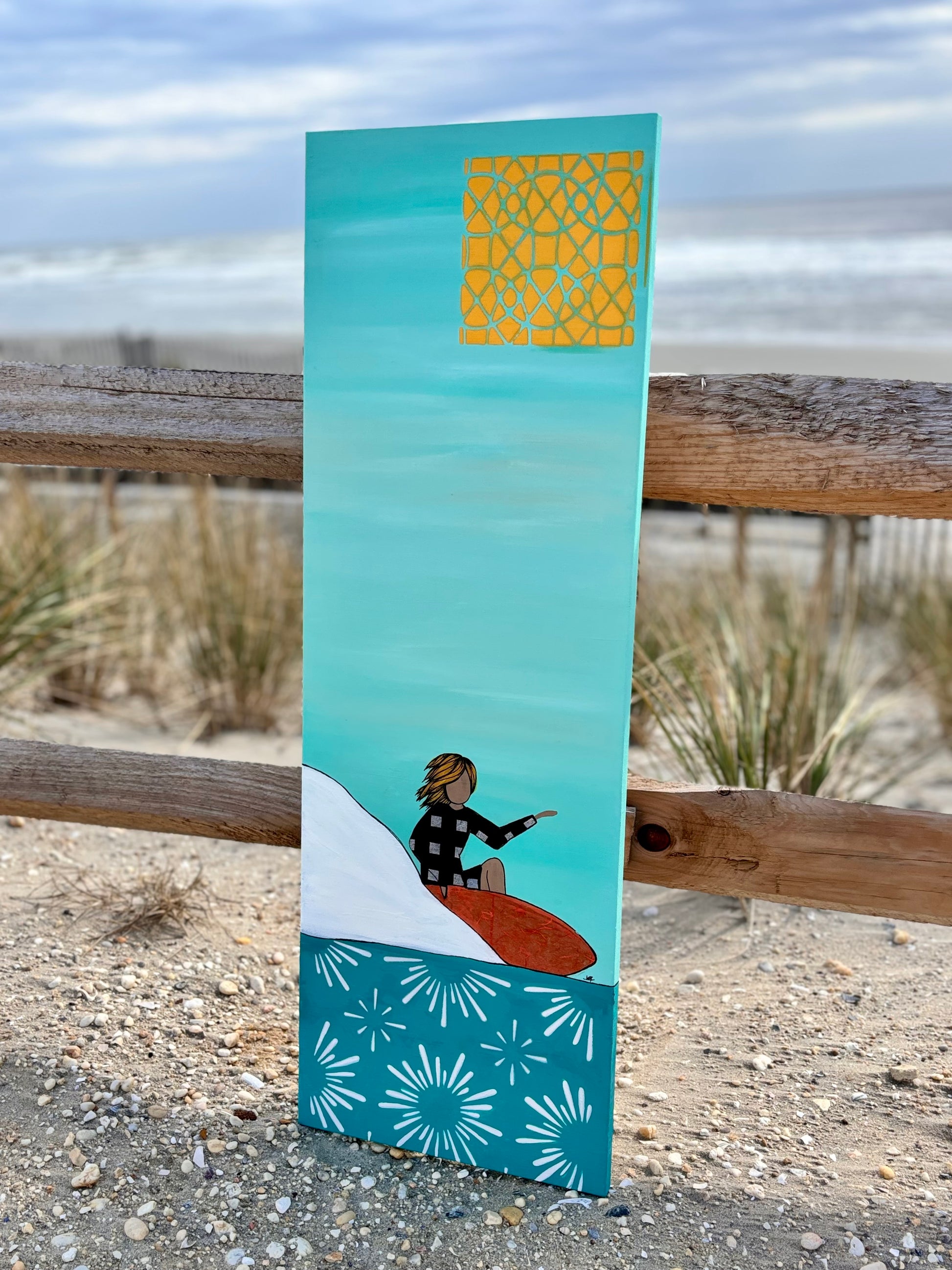 12”x36” mixed media on canvas. Layers of spray paint, acrylic, collage paper, and ink! Available as is or additional upgrade of epoxy resin glass coat + frame. ***Please allow 2-3 weeks for finish upgrade