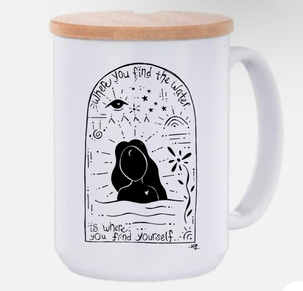 15oz. ceramic mug. Includes bamboo lid with small straw hole which helps insulate and keep your drink warm/cold for longer.